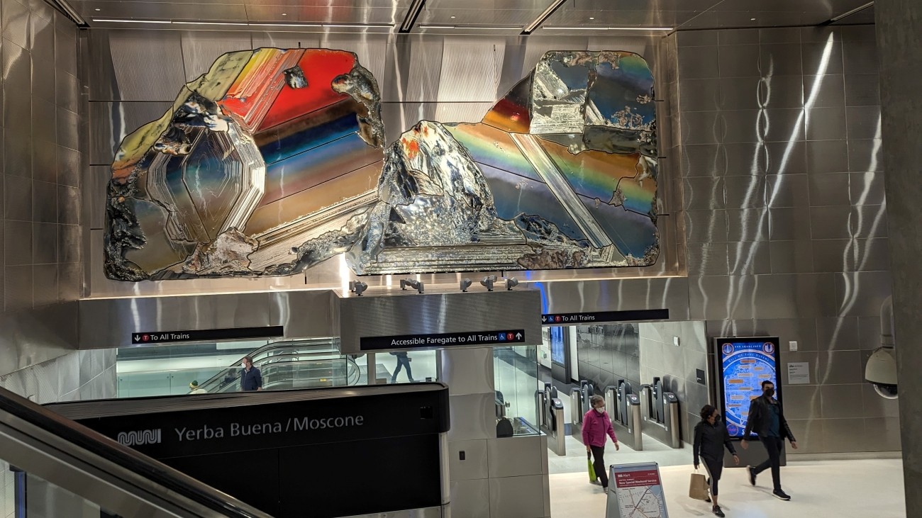 Ten site-specific artworks and unique designs by twelve artists are featured inside and outside of the new stations. The San Francisco Arts Commission and SFMTA commissioned the diverse public art program, ranging from large-scale photography, kinetic and traditional sculptures, murals, and illuminated installations. Each artwork depicts the character of the station and its surrounding neighborhoods.