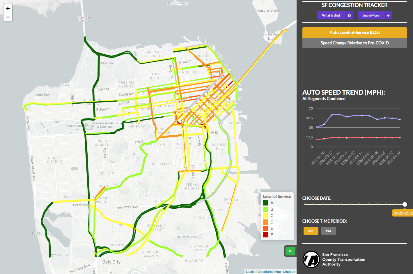 “Transportation plays a key role in the plan to support economic recovery while maintaining public health,” said Aaron Peskin, Transportation Authority Board Chair and District 3 Supervisor. “As San Francisco reopens, this new Congestion Tracker will help support planning and decision-making for our transportation system in a data-driven way.”