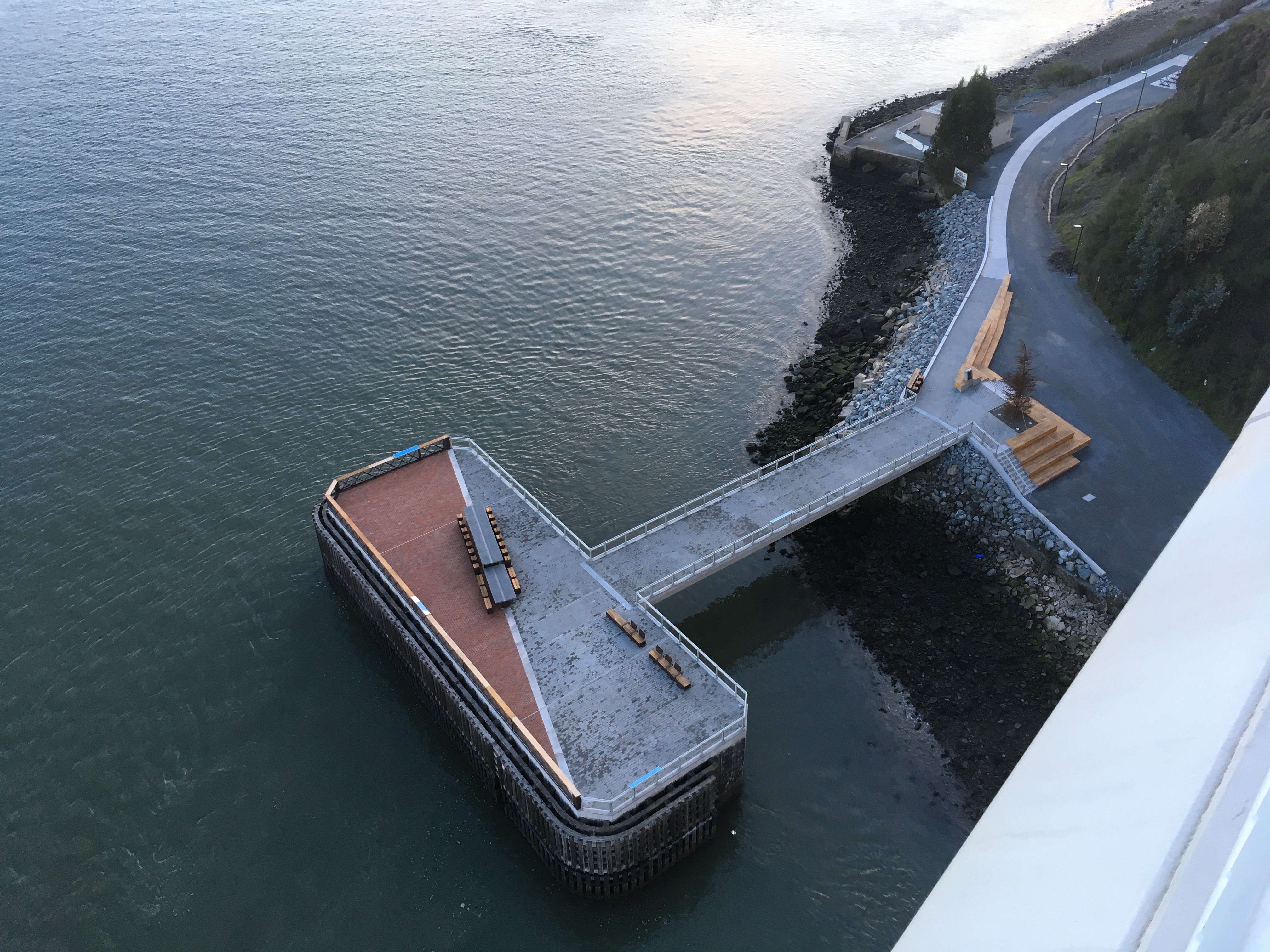 For Phase 1, a land bridge connecting Yerba Buena Island to the pier was constructed and limited vehicle parking, bicycle parking, and interpretive signage that honors and explains the site’s history were added.